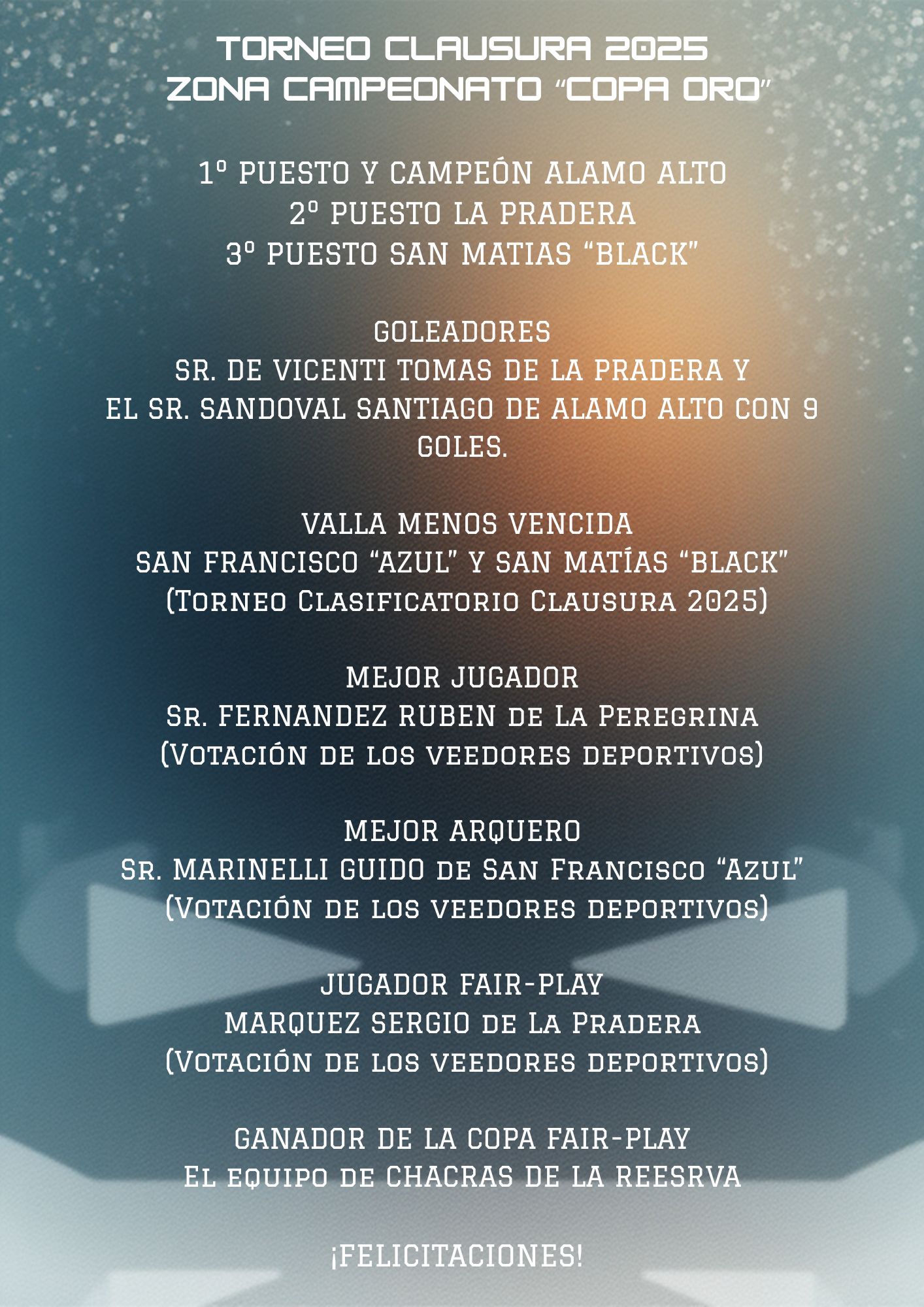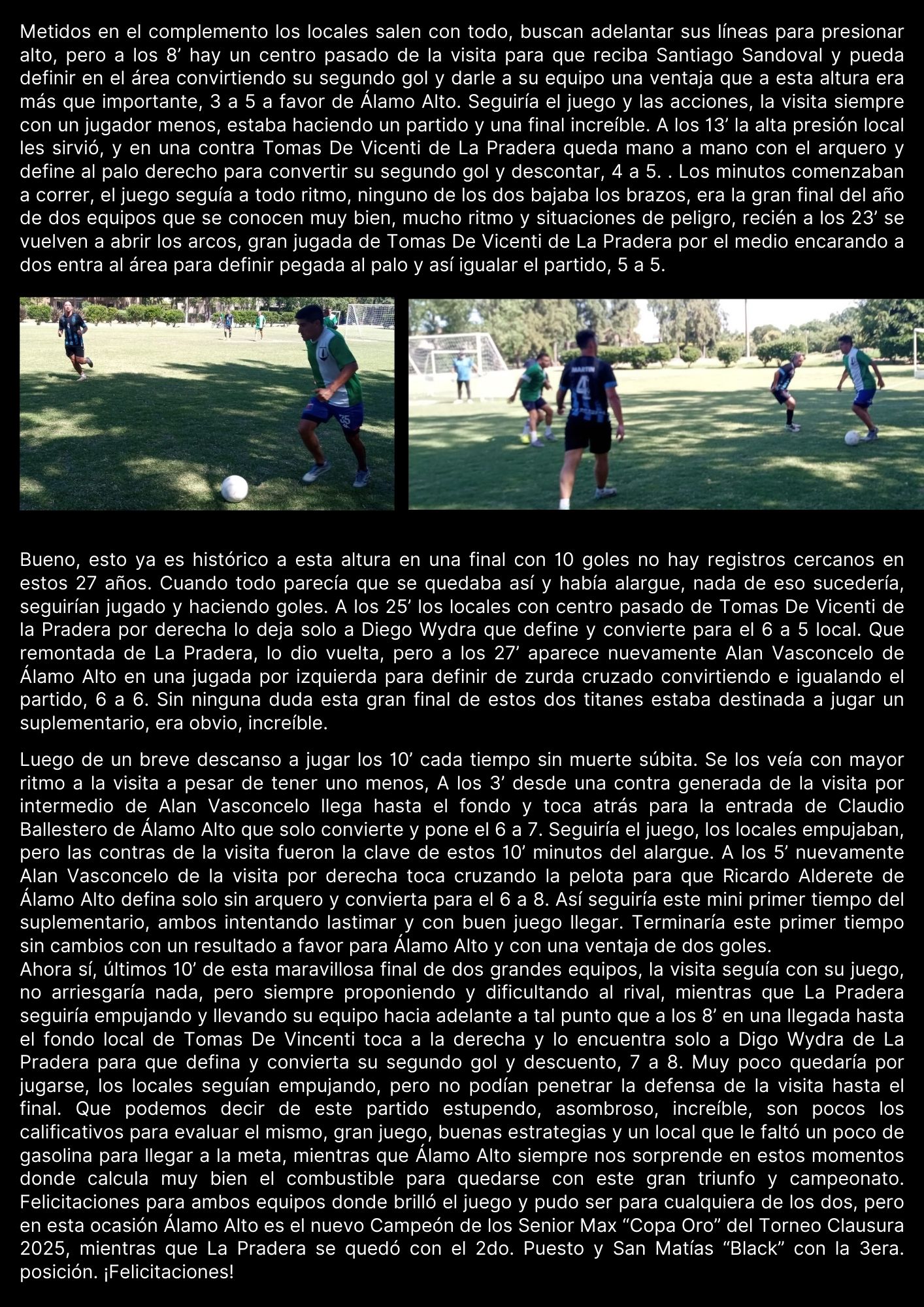Categoría Senior "Copa Oro" Torneo Clausura 2025